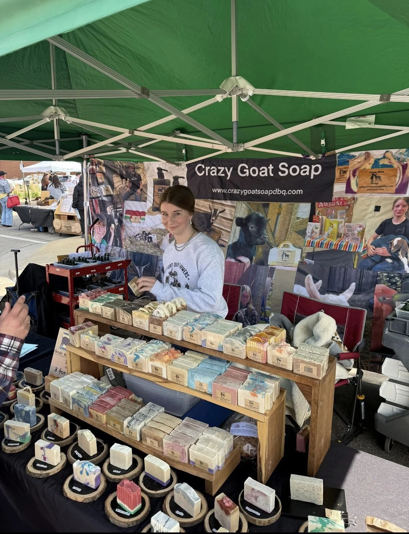 In 2020, 11 year old Taylor began to help milk at her uncle’s dairy farm. Unfortunately, she was too short so she begged and begged for her parents to let her buy a dairy goat. After dozens of calls we finally found a dairy farmer willing to sell a goat. The farmer nicknamed their goat the “crazy goat”, because she would jump the fence and run away. The farmer was planning on selling her to the meat market before we took her home and called her Fern. Taylor began milking fern 2x a day when she was only 11 years old. Fern produced over a gallon of milk each day. Taylor then began experimenting with different soap recipes. The “Crazy Goat Soap” was then created and Taylor began selling her homemade soap. The rest is history…